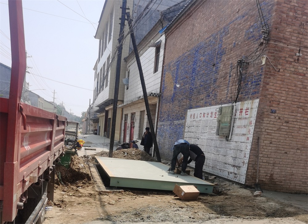 商丘寧陵張弓鎮(zhèn)農(nóng)貿(mào)市場20噸地磅施工案例