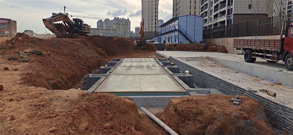 采購背景:安徽宣城市寧國龍記觀園項(xiàng)目由陜西廣裕建筑工程有限公司承包施工建設(shè),陜西廣裕建筑工程有限公司總部位于陜西省西安市高新區(qū)科技二路76號陜商投資大廈26樓,主要從事工業(yè)與民用建筑、市政工程項(xiàng)目施工。是我廠的老顧客,多次購買我廠地磅,且使用效果良好。此次安徽宣城市寧國龍記觀園項(xiàng)目在建施工,項(xiàng)目拌和站內(nèi)大量建筑材料進(jìn)出需要稱重計(jì)量,故又一次訂購了一臺中原恒瑞地磅廠3x16m定額100噸數(shù)字汽車衡,汽車衡由4節(jié)3x4m秤臺搭接組成,6道700L高強(qiáng)鋼U型梁貫穿整體,配備了凱瑞特QS-40T電子傳感器,大輝狼D7防控儀,地磅整體防作弊,準(zhǔn)確度高。現(xiàn)汽車衡已安裝完成并投入使用。