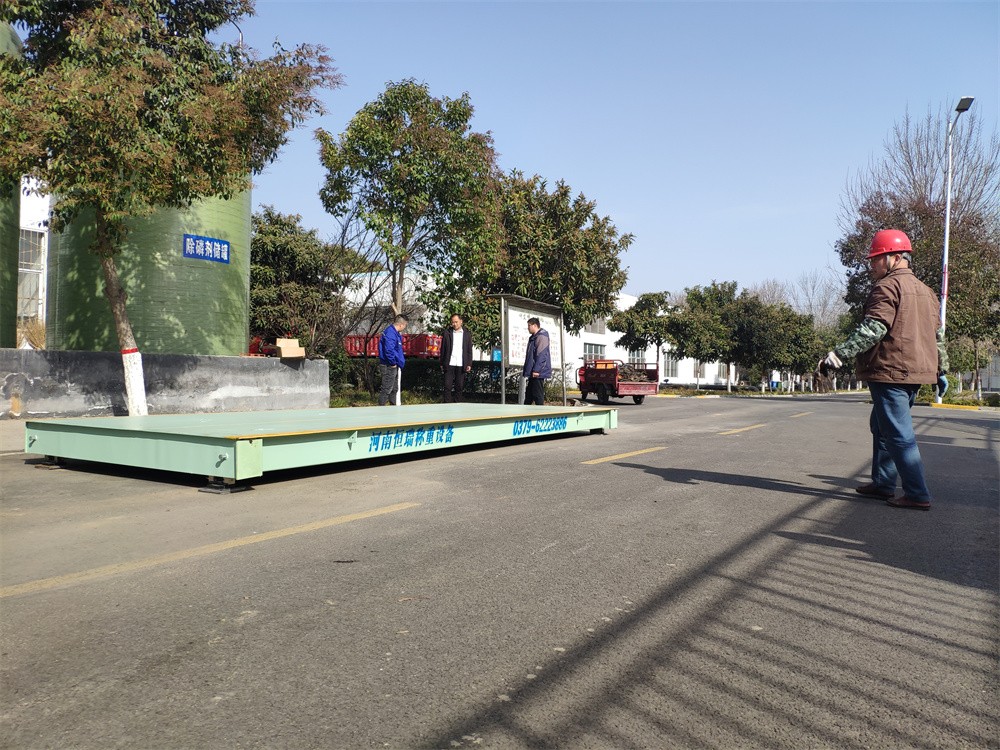 采購背景:襄城中州水務(wù)污水處理有限公司,位于襄城縣紫云大道北段,主營污水處理、污泥處理;再生水經(jīng)營與銷售;環(huán)境資源開發(fā)、節(jié)水技術(shù)開發(fā)及應(yīng)用;智慧水務(wù),水務(wù)工程;給排水設(shè)備材料銷售等。廠區(qū)購進(jìn)污水處理材料及污泥處理需要稱重計(jì)量,訂購了一臺(tái)河南恒瑞地磅廠2.5x6m定額30噸電子地磅,地磅由1節(jié)2.5x6m秤臺(tái)組成,秤臺(tái)底部貫穿5道250mmU型梁,秤臺(tái)面板厚8mm,配備了柯力QS-20T傳感器,電子地磅整體準(zhǔn)確度高,誤差小。現(xiàn)地磅已安裝完成并投入使用。
